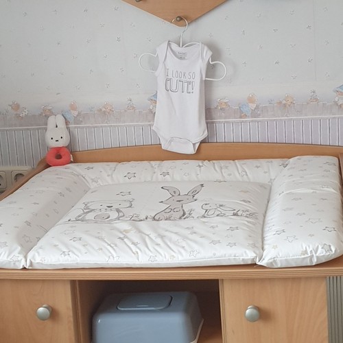 Oei geen idee of dat past. De kinderkamer van ons komt namelijk ook uit Duitsland. Als ik het aankleedkussen niet meer nodig heb kan ik het verlengstuk aan de achterkant verwijderen en is het een leuk normaal kastje.