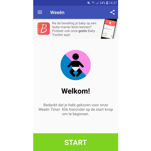 Deze heb ik ook gebruikt; prima app. Ik vond hem handig en gemakkelijk (en dat kwam goed van pas, want ik kwam pas op het idee om zo'n app te downloaden toen m'n vliezen al gebroken waren en m'n wee毛n al begonnen waren, dus weinig tijd om een ingewikkelde app te doorgronden).