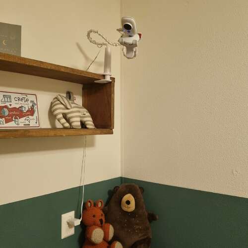 Wij hebben hem voor nu nog op de rand van het ledikantje staan. Maar we moeten ook nog wat bedenken voor op langere termijn. Als hij groter wordt lijkt me dit niet heel handig. Ik zat zelf te denken iets met dubbelzijdig tape of van die soort haakjes aan de muur die je kan plakken. Speciaal voor als je dus geen gaten in je muur wilt. Ik weet ook dus nog niet of dat werkt 🤷🏻♀️