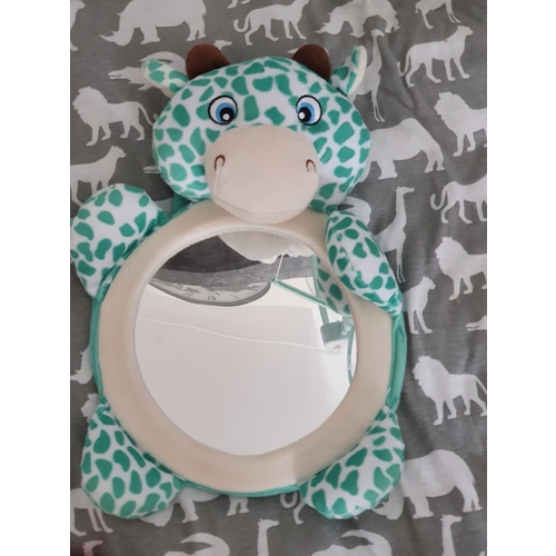 Dit spiegeltje voor in de auto, zodat je via de spiegel de kleine kan zien. Hier staat het spiegeltje in de box