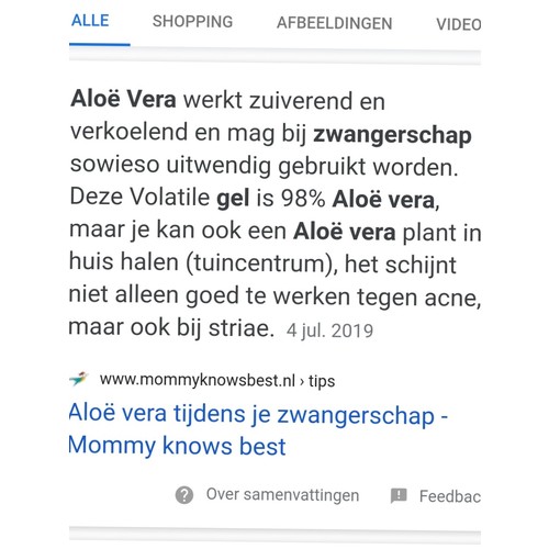 Er zit in producten waar aloë vera opstaat maar een minimaal deeltje het is veel te duur puur erdoor te doen. Maar je mag dit niet gebruiken tijdena de zwangerschap. Je vind alles op de ap zwangerhap