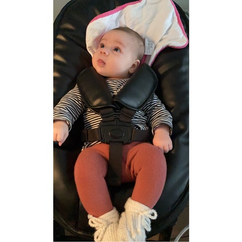 Deze hebben wij ook! Is fijn! Vond de overstap van de newborn naar het zitje wel lastig, ze was te groot voor de newborn maar zakte in elkaar in t zitje. Gebruiken nu al heel lang die ikea stoel, echt toppp!