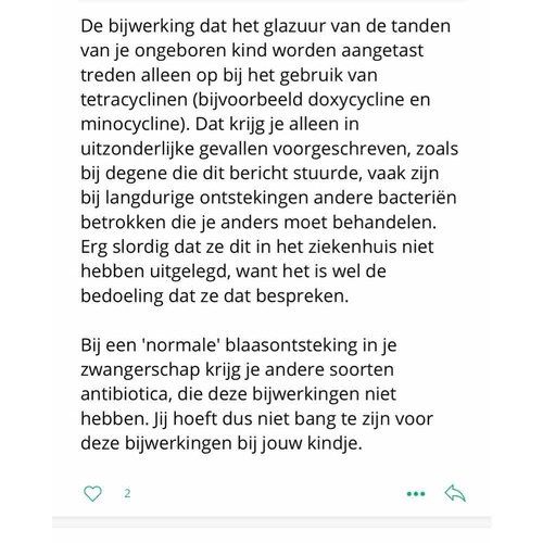 Maar ik ben sinds 2 dagen gestopt met de kuur en niks van gemerkt. De kleine is nog lekker druk en voel mijzelf ook prima en heb geen bijwerkingen gehad.