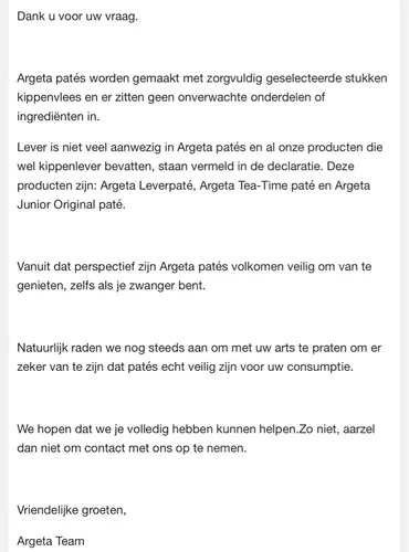 Paté mag zeer beperkt i.v.m grote hoeveelheden vitamine a die hierin zitten. Omdat er niet bij staat wat voor kippenvlees zou ik hier ook wat matig mee zijn. Aan de andere kant zou je verwachten dat als ze het daarvan maken het erop staat. Heb even gekeken op hun fb pagina en zie daar veel foto's met een kindje die het eet. Dat zegt natuurlijk niks, maar je zou het daar weleens kunnen vragen.