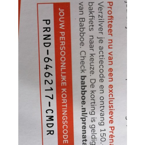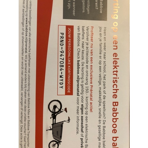 Wij willen een Babboe bakfiets aanschaffen, en nu ben ik op zoek naar een Prenatal bon voor korting.