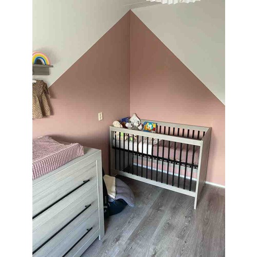 Ik vond de kleur op internet van karwei, taupe roze. Maar deze blijkt niet meer te bestaan. Nu zijn wij met de kleurcode (7053) naar de gamma gegaan en daar konden ze deze gewoon voor ons mengen. Was al extreem blij want had het helemaal uitgedacht en toen bleek de kleur niet meer te bestaan, maar zeker dus nog wel te krijgen 🙈😍