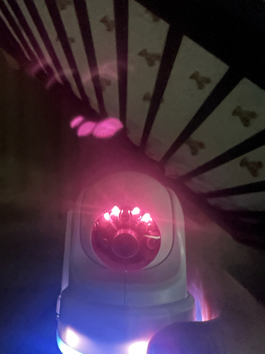 Jaa zeg maar op de camera zelf dat is voor als het donker word je goed beeld hebt . Dan gaan er rode lampjes branden om de camera voor het zicht in het donker. Alleen mijn zoontje is daar erg bang voor dus ik was benieuwd of je dat erg zag in het donker. Ik had ook gelezen dat je het uit kan zetten de lampjes maar dan is je zicht slechter vraag me af of je dan nog een beetje goed beeld had