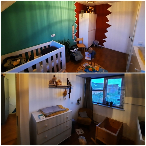 Nu wel met peutermeubels onder die planken stond de commode en daarnaast ee ...