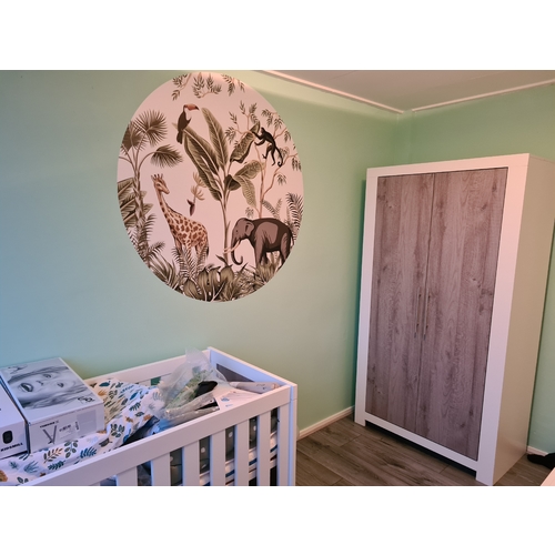 Wij hebben een muursticker bij hiphuisje.nl vandaan... Ze hebben heel veel soorten, wie weet vind je daar iets leuks?