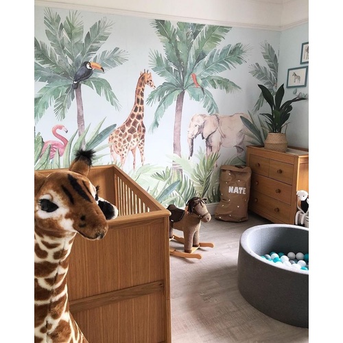 😍 mag ik vragen waar dat behang vandaan komt? ☺️ onze dochter van ruim 9 maand is helemaal gek op haar H&M giraffe 😂
