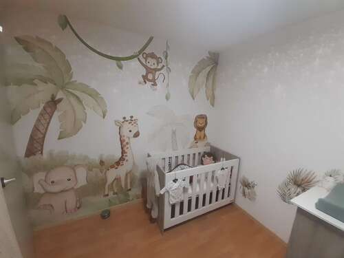 Mijn muren in de huis zijn roze en dus heb ik besloten om de babykamer niet roze te maken. Ik vind dat een beetje heftig.