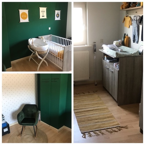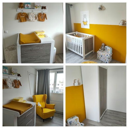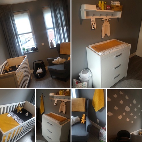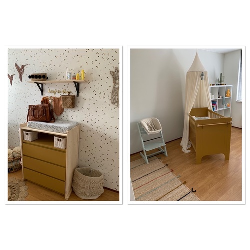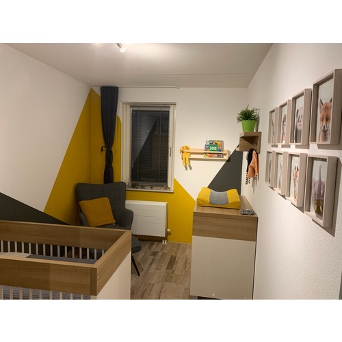 Wij hebben het zo gedaan ( Kamertje is nog niet af. Moeten het nog afwerken met accessoires en de commode moet nog binnen komen😬)
