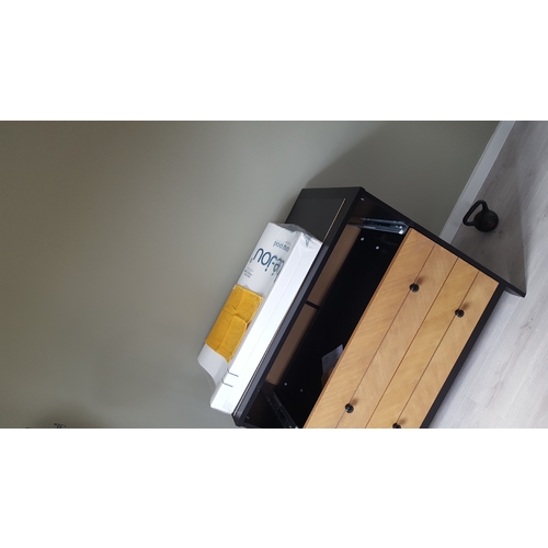 Oker met zwart en blauw. Aankleding,gordijnen en vloerkleed zijn onderweg :-)