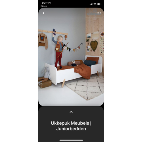 Wij hebben gekozen voor een kleurvlak in roest kleur en verder spulletjes in donkerblauw. Daarnaast ook van Meyco bijpassend beddengoed in roestkleur, en donkerblauwe lakens.