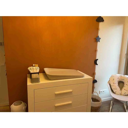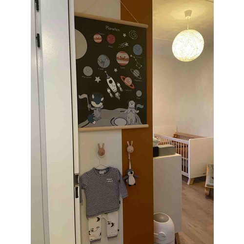 Wij hebben gekozen voor de terra kleur, boven de commode komt nog een grote cirkel. Die kunnen we pas maken als de commode geleverd is, een maand vertraging馃檮 We hebben nog tijd zat met de uitgerekende datum van 11 september maar ik wil zo graag de spulletjes kunnen opruimen haha.
