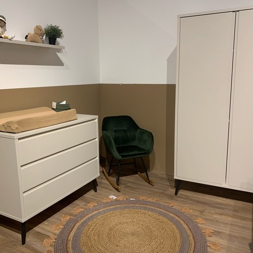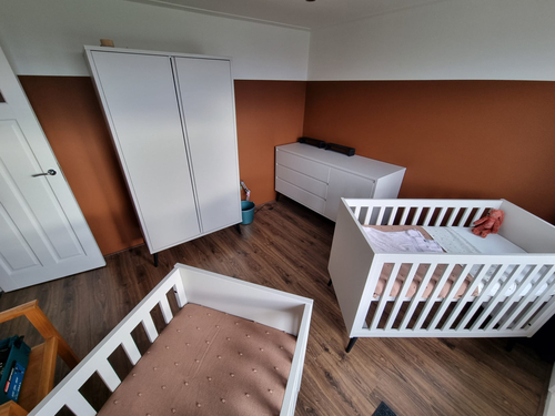 Wij hebben hem net binnen gekregen van de week. Krijgen een tweeling dus twee bedjes, de xl commode en de kast. Zal als vanmiddag alles staat even een foto maken.