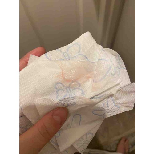 Je foto lijkt op wat ik had met 6-7 weken (inmiddels een zoontje van 5 maanden), ik maakte mij toen zorgen omdat ik daarvoor een miskraam heb gehad. Echter was de afscheiding bij de miskraam veel meer de kleur zoals bij een menstruatie. Ik hoop dat dit je wat kan geruststellen.