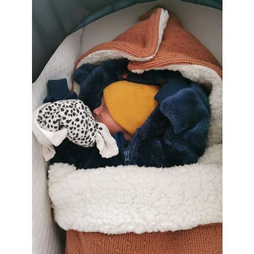 Wij hebben de eerste maanden geen jasje aangedaan omdat hij in een warme voetenzak lag. Maatje 56 is groot genoeg voor het begin hoor, maar mijn ervaring is dat je zo’n kleintje nog niet echt een jas aan doet. In de wandelwagen lag hij ook altijd in een lekkere dikke wikkeldeken.