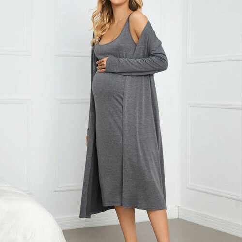 Om te bevallen had ik enkel een lang topje in mijn koffer dat makkelijk uitkon. De maanden voor de bevalling en na mijn keizersnede (daar ging mijn plan voor een topje :P) droeg ik ‘het bevallingsjurkje’. Vooral als pyjama/hangkledij voor thuis tijdens mijn zwangerschap en erna net hetzelfde. Nadat mijn operatiehemd uitmocht en ik werd opgefrist, heb ik dat jurkje aangedaan zodat in onze zoon ook altijd huid op huid kon leggen zonder iets uit te doen. Heel comfortabel en met knoopjes. Maar je hebt ook wel goedkopere jurkjes. Ik vond deze alleszins prima. Heel veel gedragen. :)