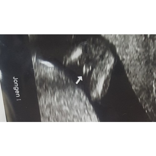 Ik ben nu 17weken en 3 dagen. Onze baby lag er niet goed voor. Toch heb ik een screenshot gemaakt van deze foto. Ik denk ook echt een jongetje. En op jou foto te zien..denk ik ook een jongetje. Bij mijn baby zat de navelstreng ook tussen de benen plus de twee vuistjes zaten ook tussen de benen. Ik zit een beetje in de dezelfde situatie als jou hahaha