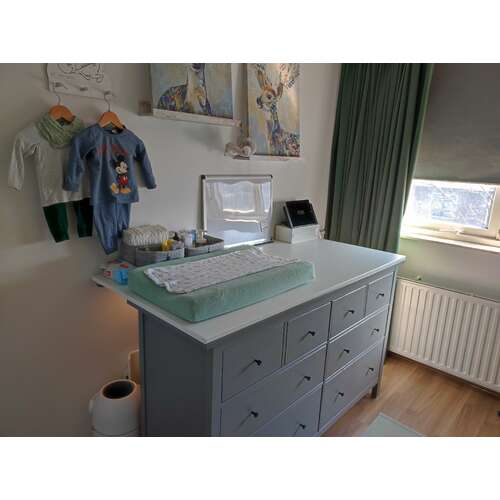 Ik gebruik de hemnes als commode zonder bladvergroter. Ik vind het niet fijn om recht voor de baby te staan, maar werk liever zijwaarts. Kwestie van persoonlijke voorkeur!