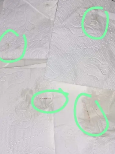 Ik weet dat de kwaliteit foto iets minder word hier. Ze hebben het gezien in het ziekenhuis en zeiden bloed maar niet helder rood of veel.. en het is ook niet veel.. maar de schrik zit er goed in.
