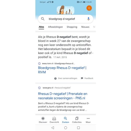 Mijn bloedgroep is negatief en die van de baby is positief. Deze 2 bloedsoorten kunnen niet samen en dan krijg je een injectie. 2 weken na de bevalling krijg je dan nog een injectie om een volgend kindje te beschermen