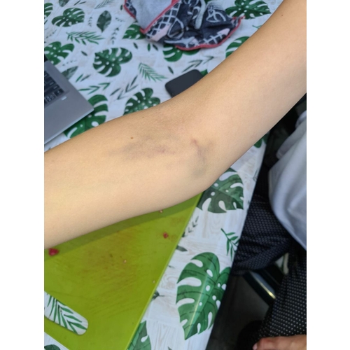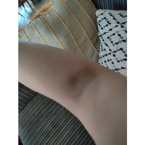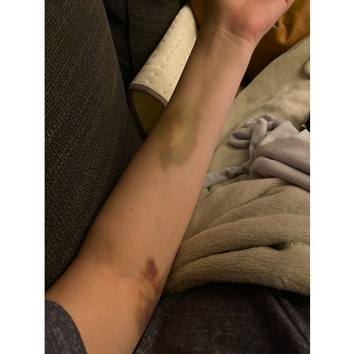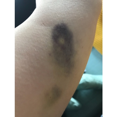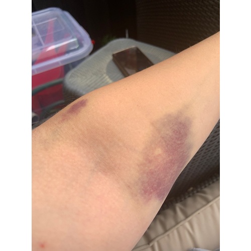 Bij mij ziet het er serieus eruit alsof iemand m'n arm mishandeld heeft.
