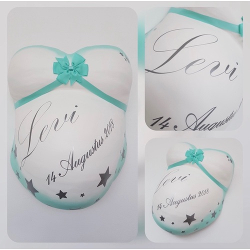Ik heb zelf een pakket gekocht bij de prenatal om te maken, dit heeft mijn zus gedaan. Daarna heb ik mijn buik weg gebracht en dit is het resultaat! Super blij mee 💗 Het bedrijf heet pimp my belly