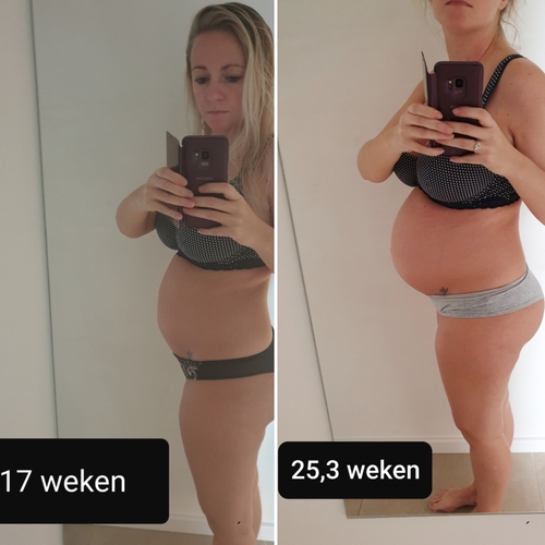 Op 10 weken zag mijn buik er ongeveer hetzelfde uit als nu op 20 weken. Vanaf week 13-14 is dit terug afgenomen en sinds week 17 is er een duidelijk (harder) buikje te zien. Momenteel 20 weken en sinds een week geleden voel ik de kleine man langs de buitenkant ook duwen en bewegen 🥰