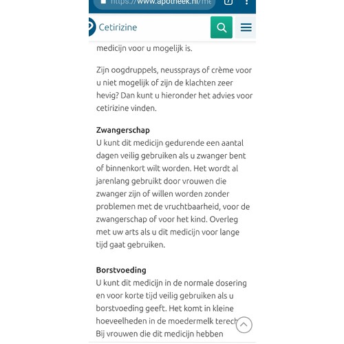 Ik gebruikte al levoceterizine tegen hooikoortsklachten (ik slik het het hele jaar door). En nu ik zwanger ben heb ik ceterizine voorgeschreven gekregen. Heb nog even gevraagd of het echt geen probleem is ivm de zwangerschap maar volgens mijn huisarts niet 馃榾 maar overleg voor de zekerheid even met je huisarts. Succes!