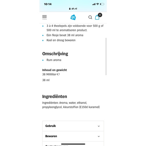 In aroma zit ook gewoon alcohol hoor met name in rum aroma