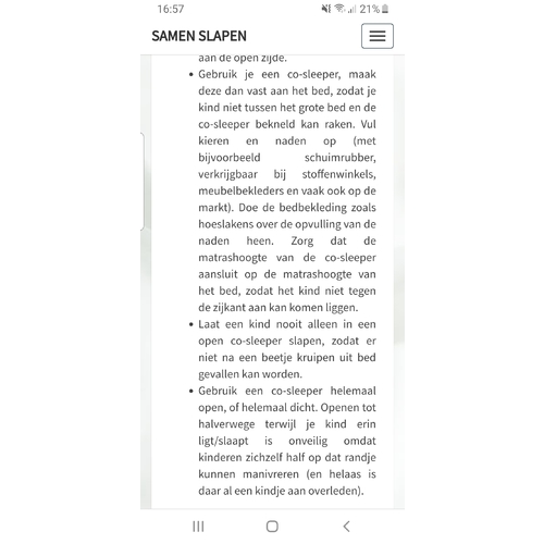 Hehe heb een linkje gevonden. Wel andere dan die ik bedoelde maar hier staan de richtlijnen om veilig samen te slapen met een co sleeper.