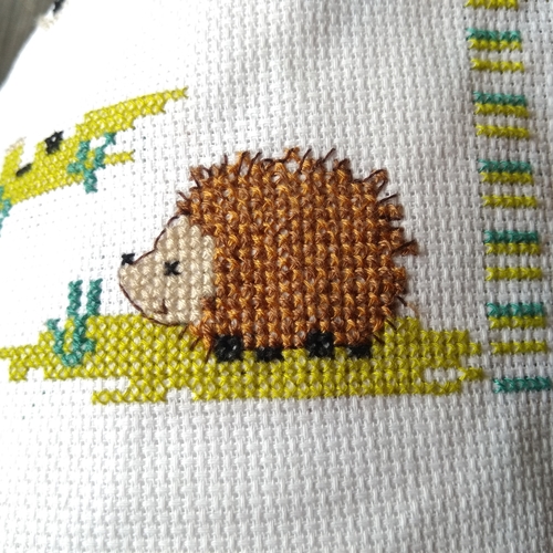 Ik ben met een geborduurde meetlat bezig. Ik kocht het pakket als verjaardagscadeau voor mezelf in juni. Het is een meetlat met allemaal bosdieren. Onze hele kinderkamer is daar omheen gecreëerd. Echter de kinderkamer is af, de meetlat nog lang niet 😂 door deze meetlat is ook de obsessie voor vosjes gekomen, die heel toevallig dit jaar overal te vinden zijn 🦊🍁♥️