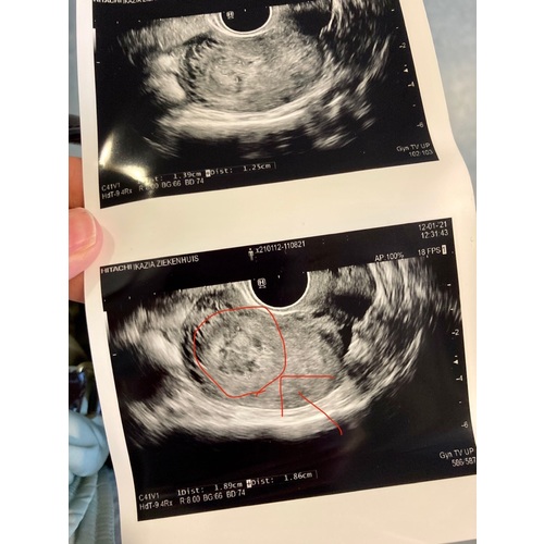 Ja hier het zelfde! Ik mocht het ook nog even aan zien.. 27 januari weer een echo om te zien of het dan leeg is en anders curretage.. 😔