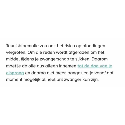Het heeft voor mij absoluut niets gedaan 😂. Alles wat het zou moeten voorkomen of voorspoedigen is niet gebeurd. Maar ik ben nog steeds baad het niet dan schaadt het niet.