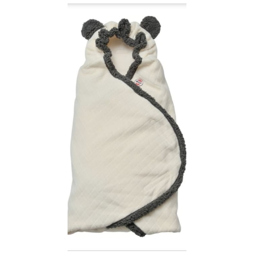 Van Lodger, hier wikkelen we onze zoon in. Wel nog een jasje aan en een winddekje over de reiswieg. Ook ideaal voor in de maxicosi, zitten gaten in om gordels door heen te halen.