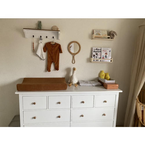 Wij hebben deze ook. De hemnes van Ikea. Ook iDeal dat het straks jaren kan blijven staan, en het niet specifiek is voor de kindertijd. Lijkt me ook ideaal dat je meer ruimte hebt op het blad om eea in de buurt te houden. Wij gaan er in eerste instantie geen andere kast meer bij gebruiken. Maar wie weet is dat later toch wel nodig.