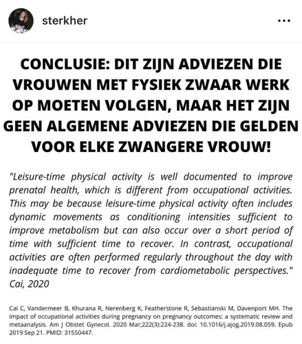 Ik weet niet of dit nog iets toevoegt, gezien de laatste reactie van TS, maar de gelinkte post/onderzoek gaan eigenlijk specifiek over risico’s die zwangere vrouwen lopen die voor hun werk 40-55 uur per week stelselmatig zwaar tillen. Dan zie je inderdaad dat er risico’s ontstaan.