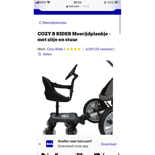 Meerijplankjes vind ik hem nog te klein voor en als we een langer stuk gaan wandelen vind ik het voor de oudste fijn dat hij ook een comfortabel plekje heeft om evt ook een dutje te doen of uit te rusten.