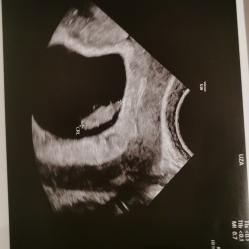 Deze echo was ik 6w3d (ik dacht zelf verder te zijn). Ook bij mij dachten ze dat t niet goed was, omdat het te klein zou zijn. Ben op dit moment inmiddels 17w zwanger. Houd hoop en ik duim met je mee!
