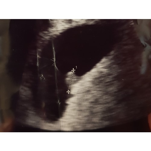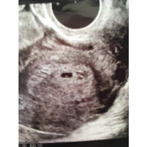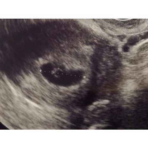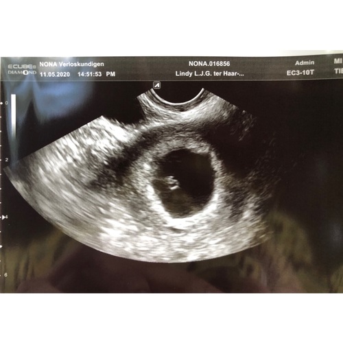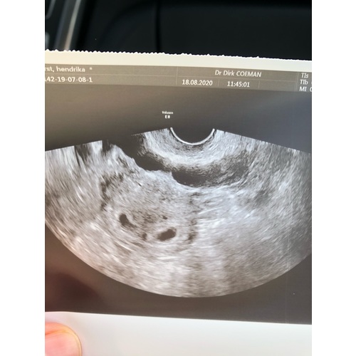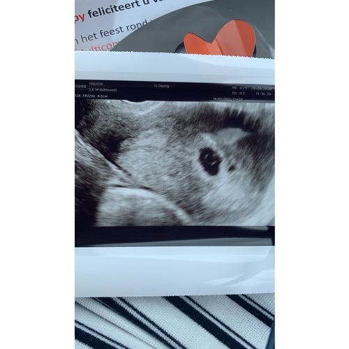 Dit was mijn echo 5+5 ( er staat geloof ik ander termijn op , ik was echt veel terug gezet, door een gemiste menstruatie die dus eigenlijk gewoon gemist was en geen zwangerschap was )