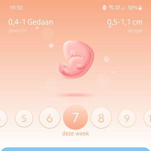 dit was bij mij met 8 weken, zie je ook niet erg veel in nog als je het mij vraagt