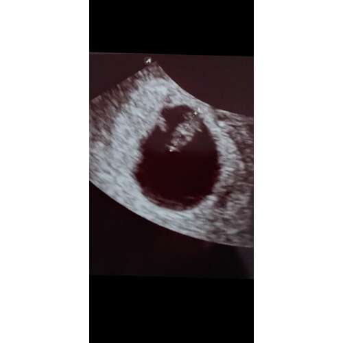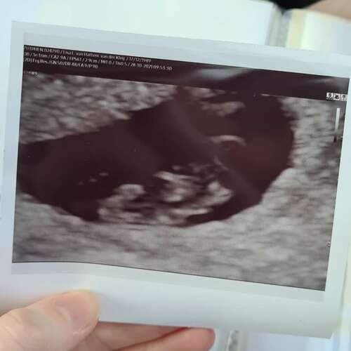 dit was bij mij met 8 weken, zie je ook niet erg veel in nog als je het mij ...