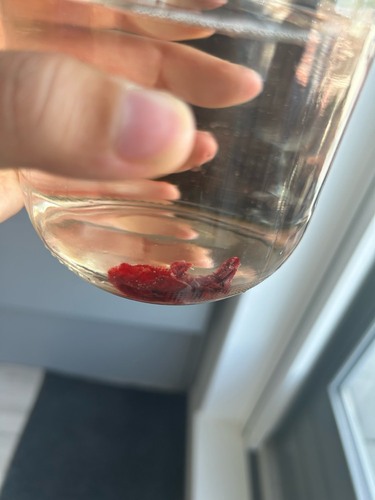 Hoi allemaal, bedankt voor jullie berichtjes en sorry dat ik niet meer gereageerd had. Ik ben vandaag begonnen met de eerste kuur en wat een intense pijn heb ik gehad zeg. Ongeveer een uur geleden voelde ik iets groots in mijn vagina zitten en ik moest snel naar het toilet toe om het op te vangen. Hier kwam een gigantische grote stolsel uit en iets waarvan wij vermoeden dat het het vruchtje is.
