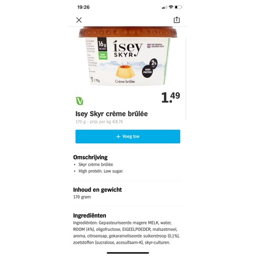 Geniet lekker van je skyr crème brûlée, het klinkt goed idd, die mag ook op mijn boodschappenlijstje!