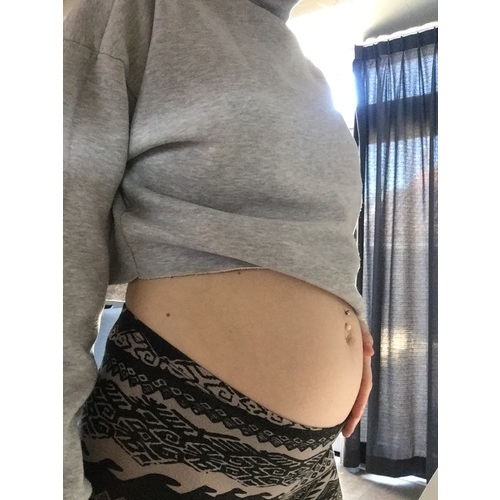 Nu inmiddels 12 weken en al wat meer aan gewend. Buik wordt r niet kleiner op maar ben er stiekem nu wel heel trots op. Had alleen bijna geen kleren meer om te dragen dus vandaag mooi inkopen gedaan en nu lekker showen met mn buik hihi 😊 Morgen gaan we t ook aan vrienden vertellen want t valt echt niet meer te verstoppen haha 😋