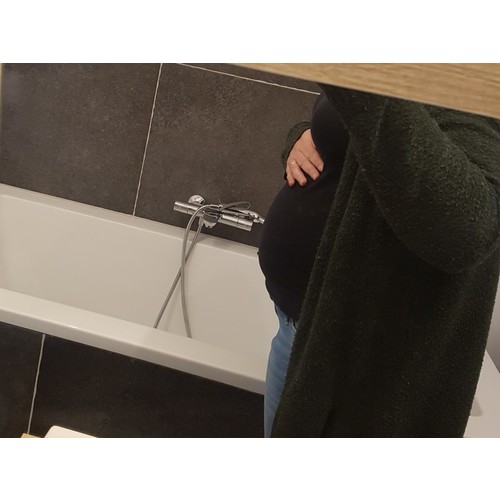 Nog steeds (inmiddels 30 weken) is mn buik groter dan gemiddeld. Hij zit ook echt aan de voorkant zeg maar, aan de achterkant zie je niet dat ik zwanger ben en dan draai ik me om en tadaaaaaa 🤰