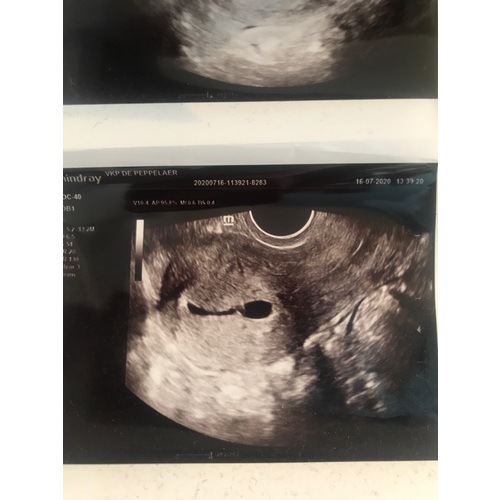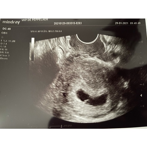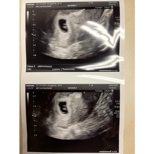Ja maar ik kreeg geen fotos mee. Wat volgens mij vrij raar is want meestal krijg je dat wel. Ik zag nog niet veel hoor. Alleen een vruchtzak. Zelfs de dooier zat er nog niet