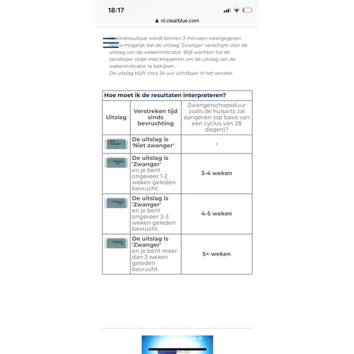 De clearblue wekenindicator geeft iets anders aan. Staat duidelijk in het boekje. 2-3 betekent 4-5 weken zwanger. 3+ betekent 6 weken en meer.. Lees dit nog even goed door.